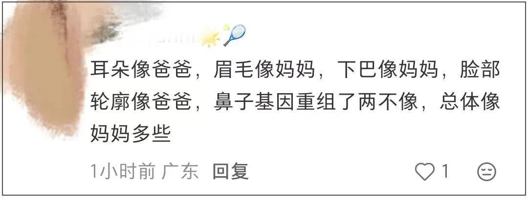 如今,羅密歐壹大波高清正臉照曝光,面部輪廓及伍官到底長得像媽還是像爸被討論得熱火朝天,有網友分析稱耳朵像爸爸個性強,眉毛下巴像媽媽,鼻子兩邊都不像,整體看著更像媽媽。