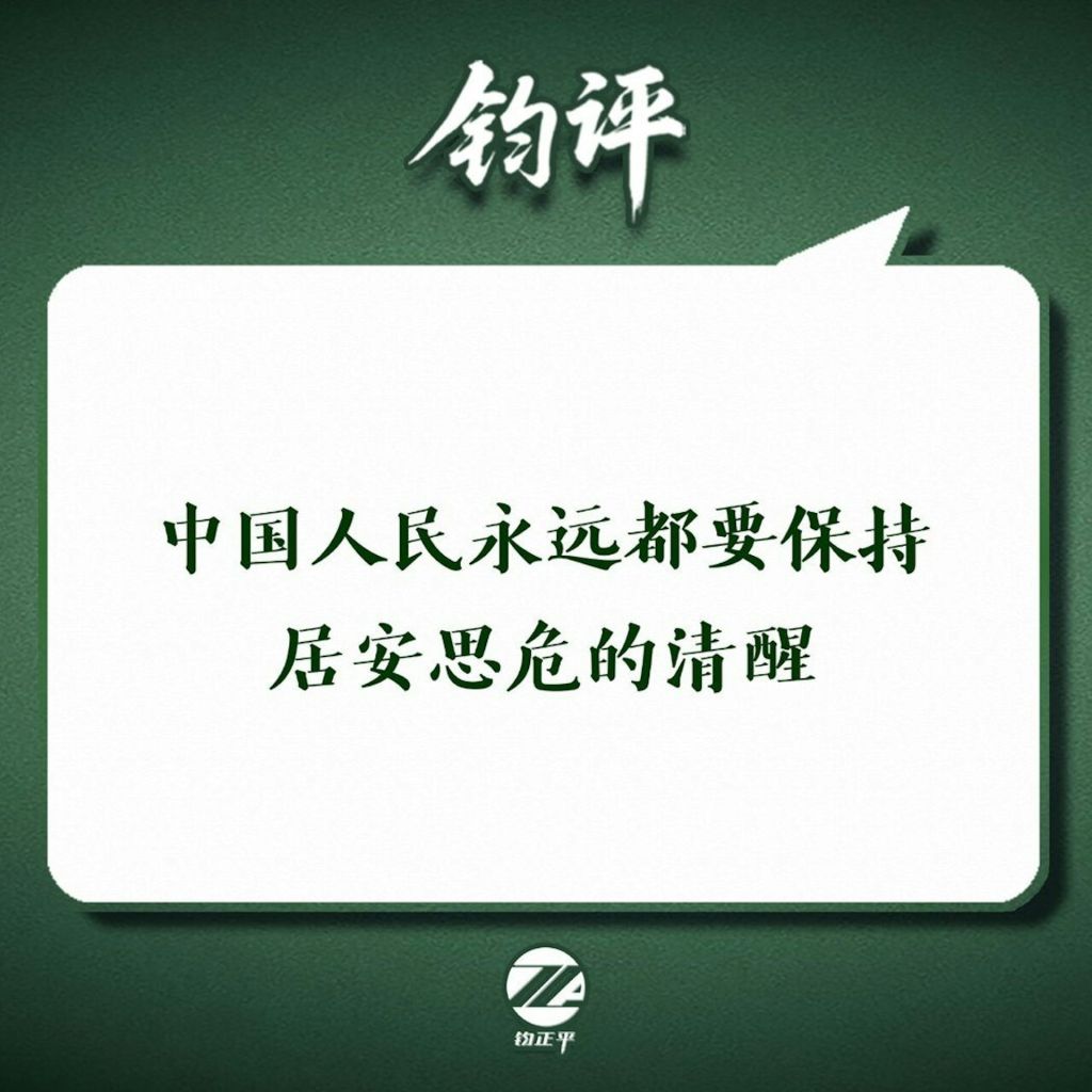 中国解放军旗下重要宣传平台《钧正平工作室》发布题为「中国人民永远都要保持居安思危的清醒」的文章。(《钧正平工作室》)