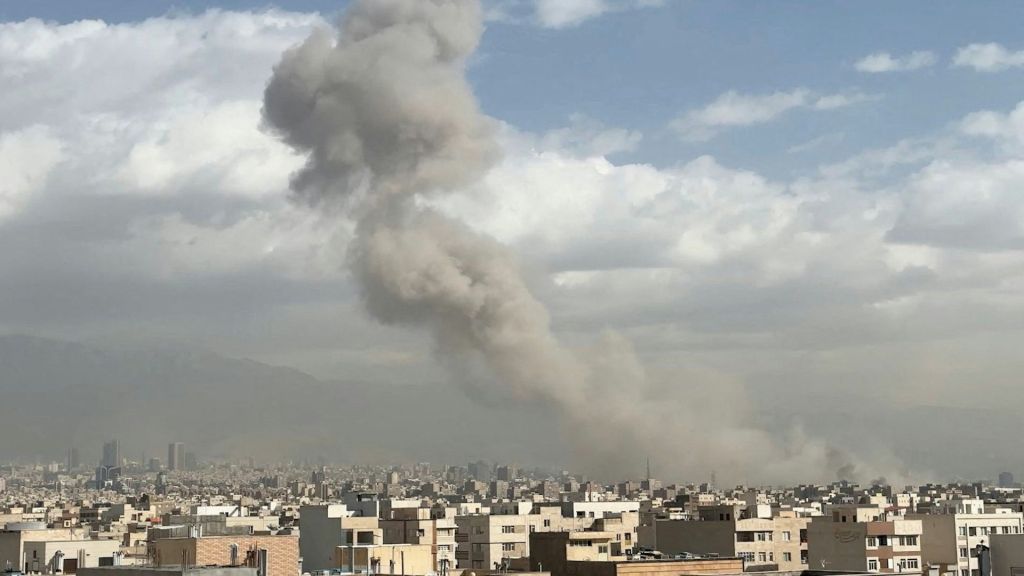 2026年2月28日,以色列与美国联手空袭伊朗,伊朗首都德黑兰爆炸冒烟(WANA (West Asia News Agency) via REUTERS)