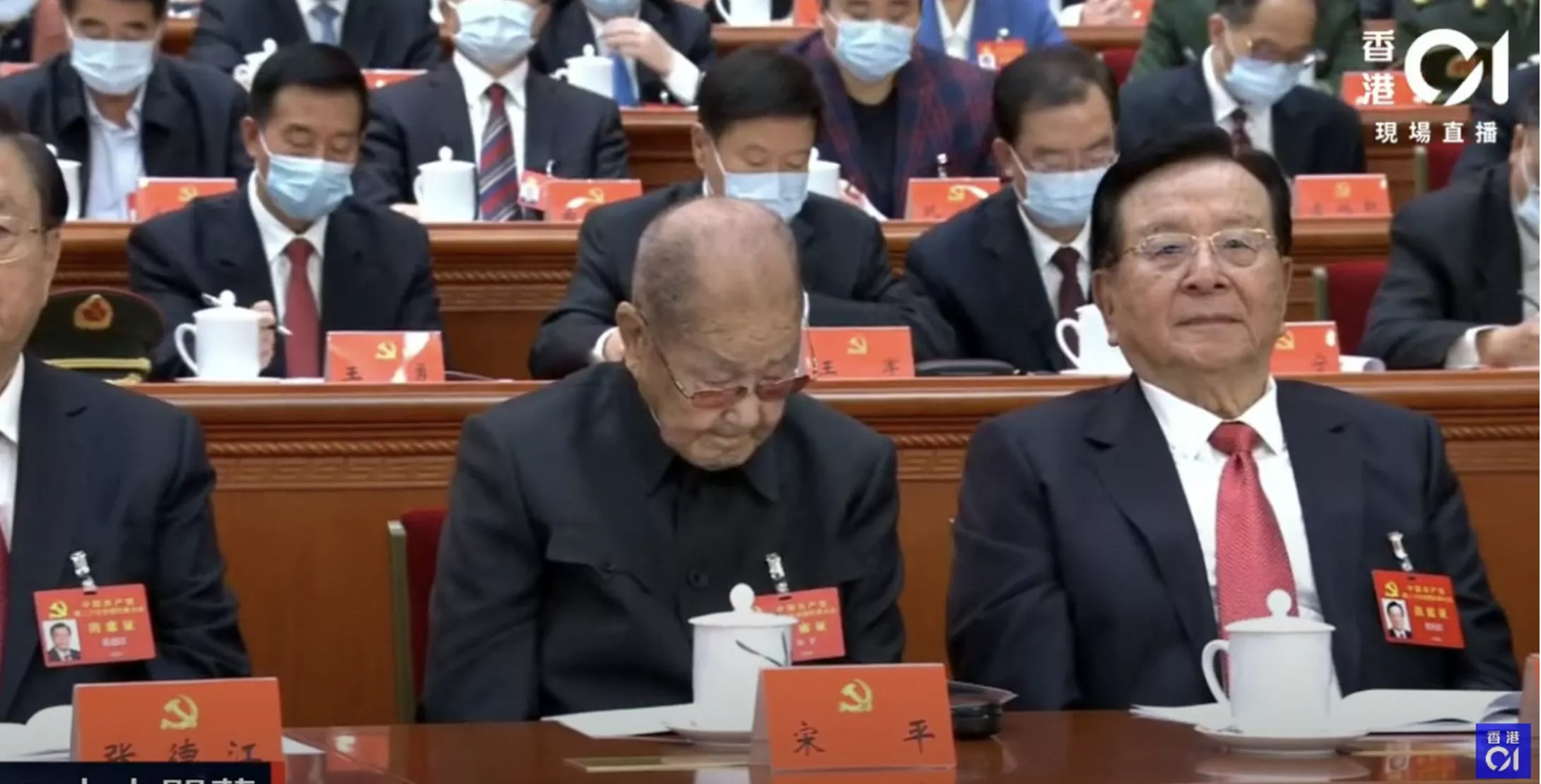 据《中评社》报道,当时会议期间,宋平几乎全程伏案认真翻阅二十大报告。在他端起茶杯喝水时,一旁的曾庆红也热心地帮忙扶着水杯。离场环节,现场工作人员为宋平推来轮椅,与宋平隔席而坐的中共第十七届政治局常委李长春走上前来搀扶、问候。