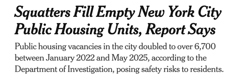 纽约(专题)市检查机构本周二发布的一份报告称,在纽约市庞大的公共住房系统中,空置公寓数量在2022年1月至2025年5月期间增长了一倍多,超过6700套。报告补充说,这些空置房源让数百名非法占屋者进入并占据公寓,从而危及楼宇安全。