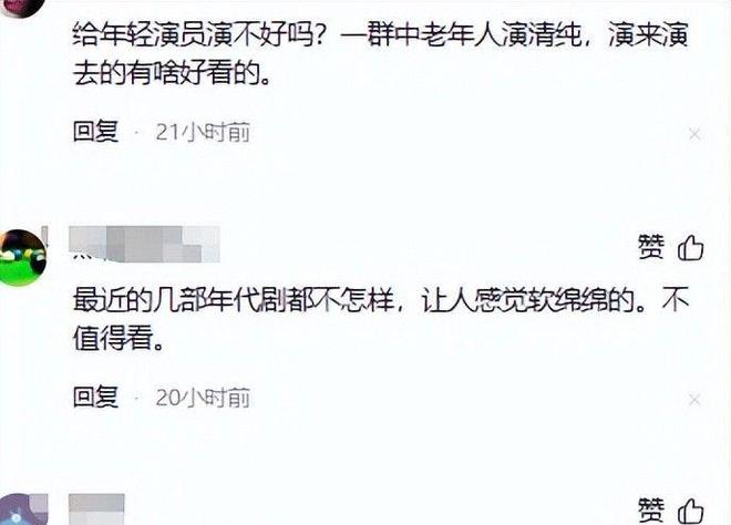 有观众直言 “看他们俩演青涩情侣,比看我爸妈谈恋爱还别扭,眼神里的沧桑根本藏不住,编剧导演是眼瞎还是心盲”。