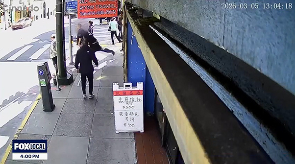 近日,美国旧金山唐人街一段监控视频曝光,其中显示,一名男子等红灯时被一名穿深色连帽衫的男子从背后刺伤。