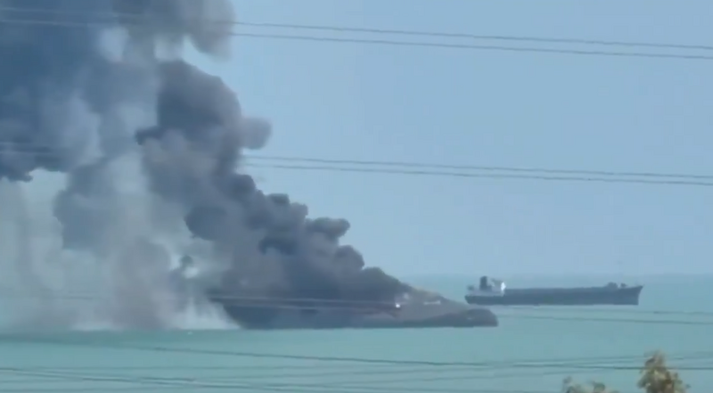 班達爾倫格的港口壹艘蘇萊曼尼級軍艦遭擊中 (擷取自“@Kunluntalk”/X)