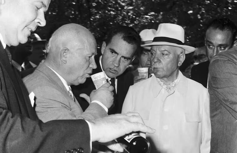 1959年,肯達爾正試圖在蘇聯設立百事工廠。當年莫斯科舉辦了壹場美國產品展覽,他看到了機會。同壹場展覽中,時任美國副總統的尼克松與蘇聯領導人赫魯雪夫(Nikita S. Khrushchev)進行了著名的“廚房辯論”。在肯達爾的請求下,尼克松帶著赫魯雪夫走到百事的展示攤位。