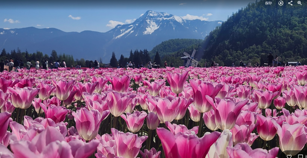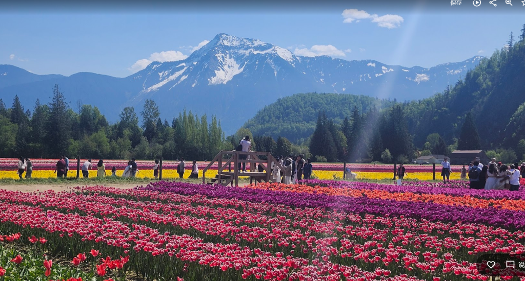 農場坐落在雄偉的群山中,以雪山為背景,漫步在壹排排的郁金香花叢中,欣賞超過 1000 萬朵伍顏六色的郁金香,同時還能聞到風信子和水仙花的宜人香氣。