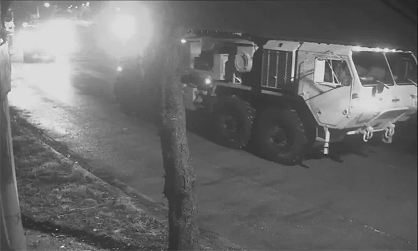 韩国韶成里的摄像头拍摄到“萨德”反导系统发射车驶离基地。 视频截图
