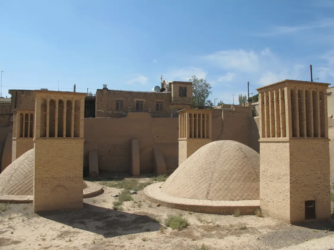 建在地下空间上的风塔和穹顶。伊朗建筑大量使用穹顶,具有实际目的,意在降温和促进空气流通。