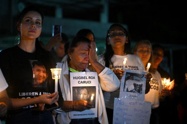 在委內瑞拉瓜蒂雷的壹處設施外,家屬們要求釋放政治犯。圖片來源:FEDERICO PARRA/AFP/GETTY IMAGES