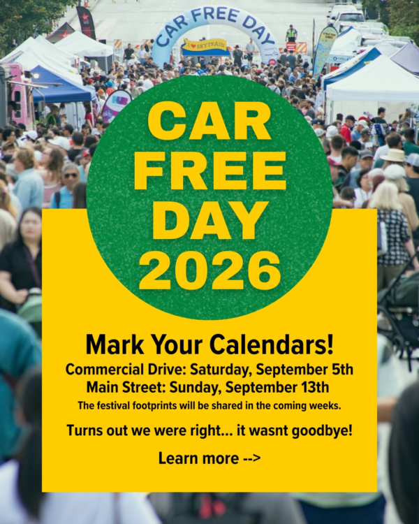 加西网编译报道:温哥华无车日(Car Free Days Vancouver)在 2026 年初曾因资金短缺宣布全面取消,但现在好消息传来,今年的无车日活动将恢复,并且已经官宣了今年的活动日期。