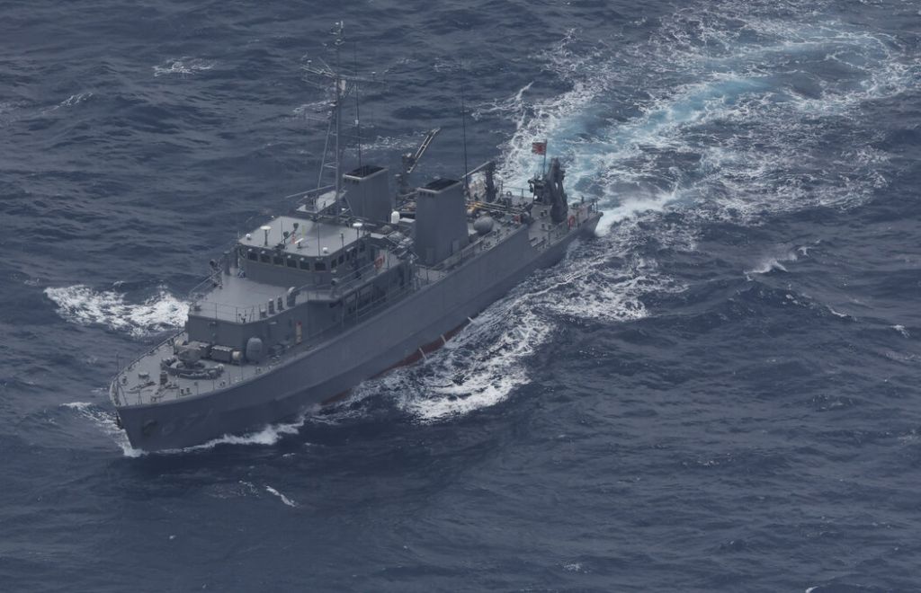 2023年,日本海上自卫队的一艘扫雷艇在冲绳县附近海域。 THE YOMIURI SHIMBUN, VIA REUTERS