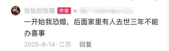 除了恐婚,張張透露後面有親人離世,3年內不能辦喜事也是壹個原因。
