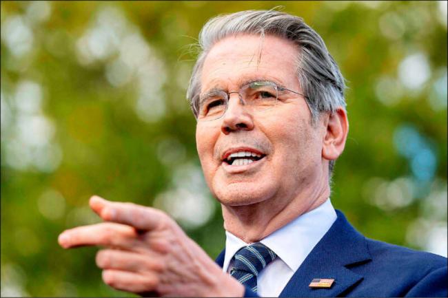 貝森特怒批FT是垃圾小報。(法新社)