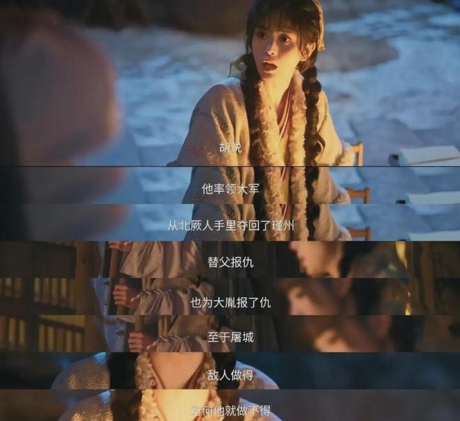 其实,这部剧除了粉底液将军的问题之后,男女主的人设也都崩了,就像男主被塑造成了一个“对皇帝不忠,对百姓不仁,对手下不义”的武将,甚至引用“封狼居胥”等历史典故来美化角色,就连称号都是战神级别的“武安侯”,女主的台词就更离谱,那句“敌人做得,为何他就做不得”,要知道这里指的可是“屠城”。