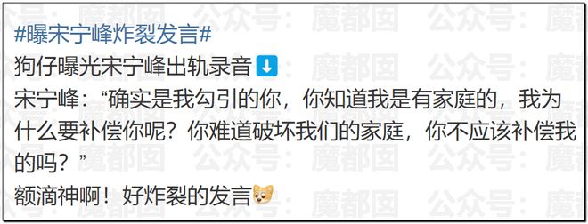 接下来说一下那个宋宁峰出轨的事件,他就是齐溪的前夫,老实讲,我们是一点兴趣都没有,要不是他后来被爆出了一个极其炸裂的录音,我们都不知道应该说他三观歪还是说他三观正。