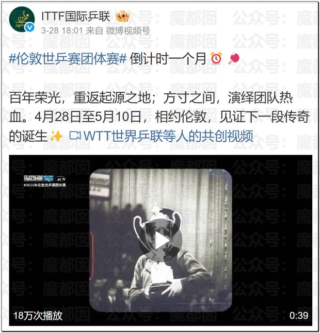 最后我们写下樊振东的事情,实在太令人无语了……事情的起因很简单,wtt和ittf做了一个宣传视频: