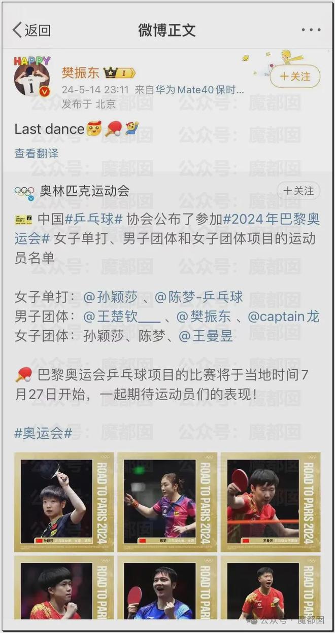 更早之前,樊振东发布“最后一舞”的文字就已经足够让大家想象。