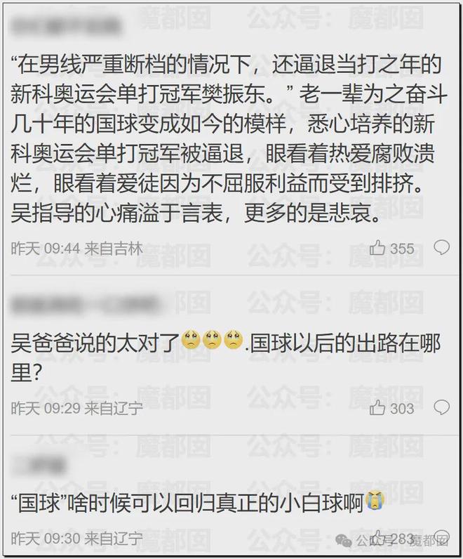 要知道樊振东等是吴指导的得意弟子,看着自己的弟子在当打之年被莫名其妙的逼退,他心里肯定是非常难受的。