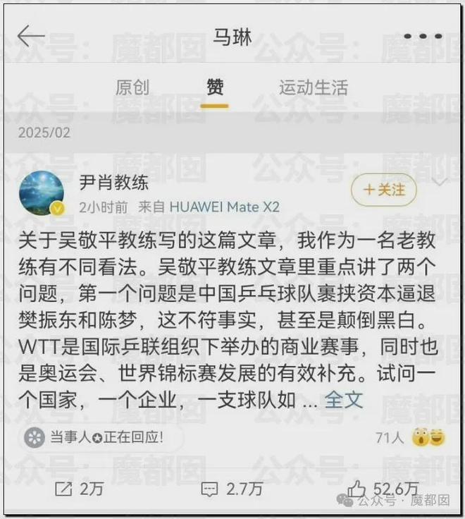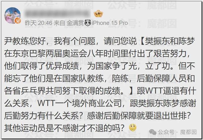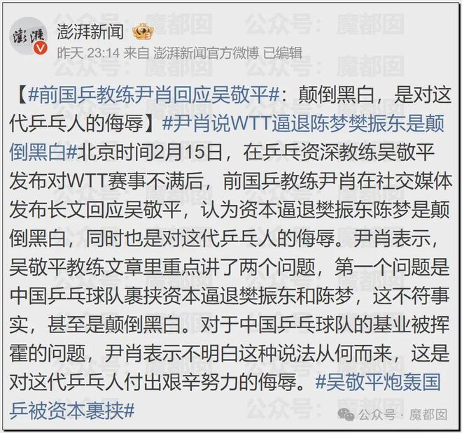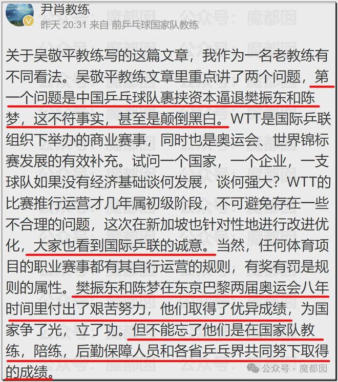 老实讲,我们其实很意外国乒那么多教练不出声,尹肖发声。