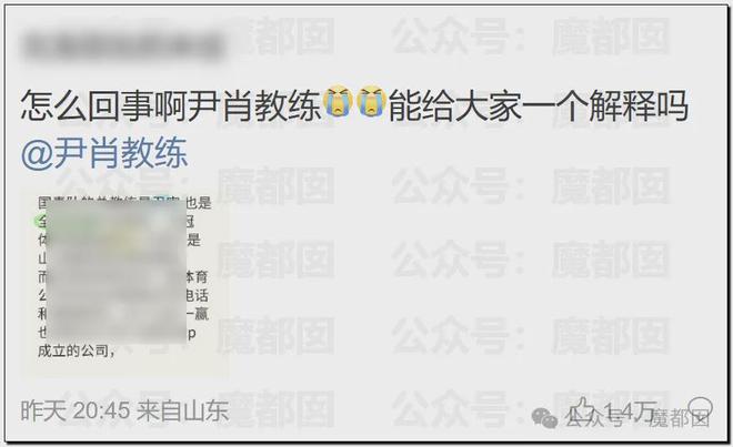 尹肖教练之前从没发过声,甚至连互联网账号都没有,这次的账号是新注册的,一注册就马上认证发长文?