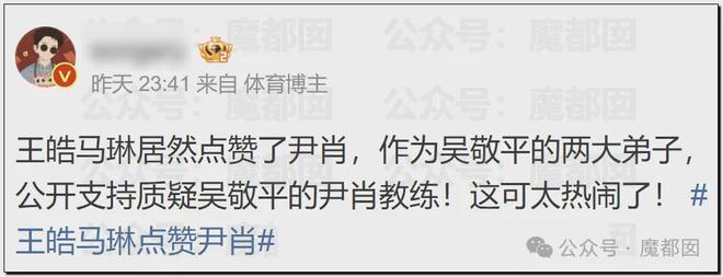 但是现役几位国乒的教练却明显不支持吴敬平,他们支持的是尹肖,请看马琳点赞: