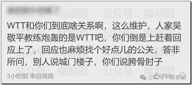 2025年2月15日,吴敬平教练发文炮轰WTT谈乒坛乱象,直言国球已经变味了:“在男线严重断档的情况下,还逼退当打之年的新科奥运会单打冠军樊振东。”吴敬平指出,因为樊振东和陈梦没有世界排名,那么现在参加比赛,需要从资格赛打起。这在大赛中确实是一个笑话。这在其他项目的比赛中是根本不可能出现的。