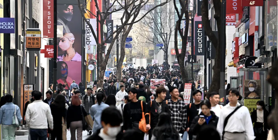 游客在韓國首爾明洞商圈游覽。資料圖 圖自韓媒