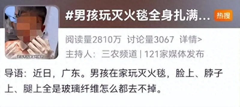深圳壹男孩玩滅火毯全身扎滿"細針"! 媽媽崩潰