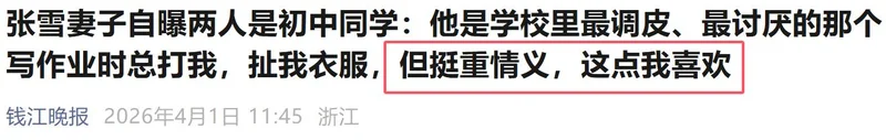 张雪的这些行为,这也符合张雪妻子对他的评价:“讲义气,重情义。”