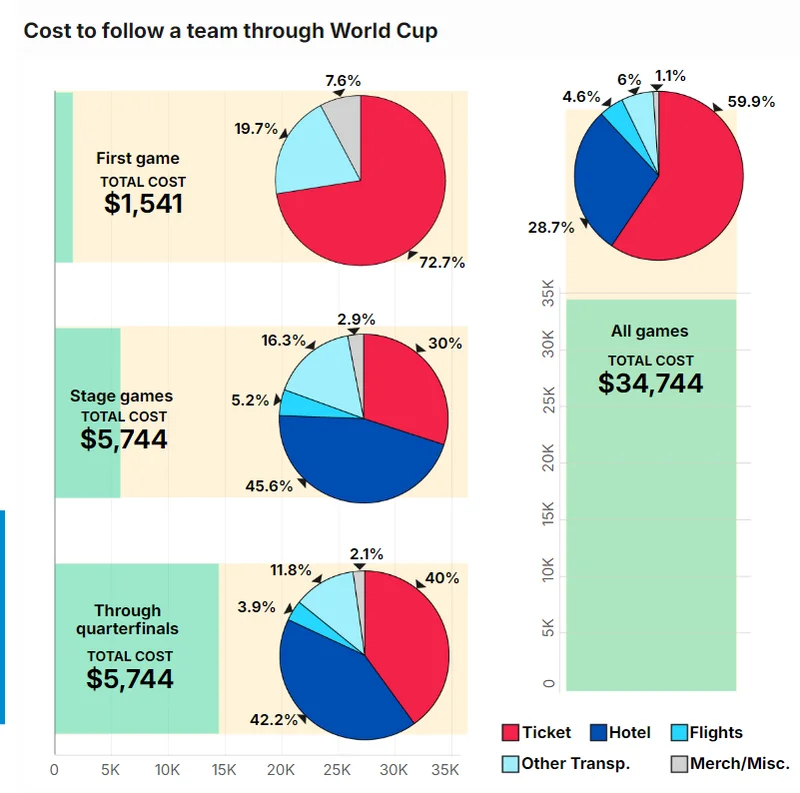 对比上一届在卡塔尔举行的世界杯,当时决赛门票大约在600美元左右,这种涨幅,让不少球迷一时间有点难以接受。