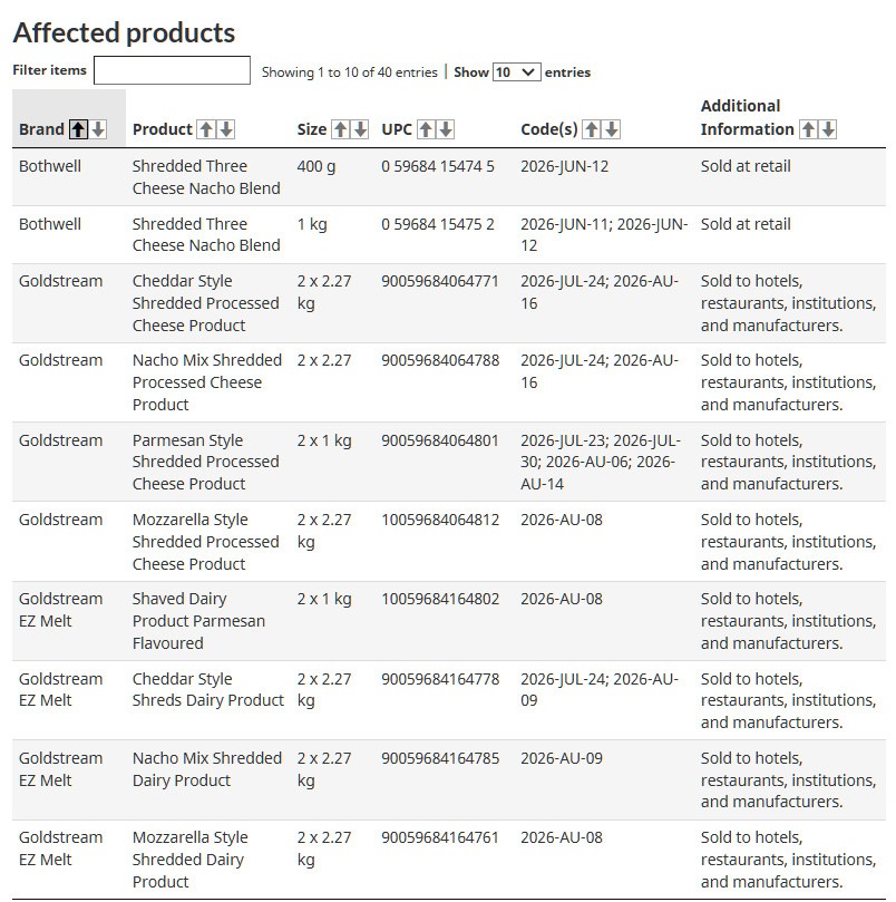 受影響產品的完整清單可在加拿大食品檢驗局 (CFIA) 網站上查閱:https://recalls-rappels.canada.ca/en/alert-recall/various...