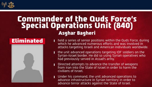 IDF本周二宣布击杀IRGC圣城军第840特种作战单位指挥官。(图翻摄自IDF官方X)
