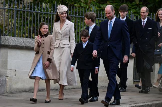 當天是英國王室壹年壹度的“家庭聚會”,壹家人齊聚在溫莎城堡的聖喬治教堂,參加復活節禮拜活動。