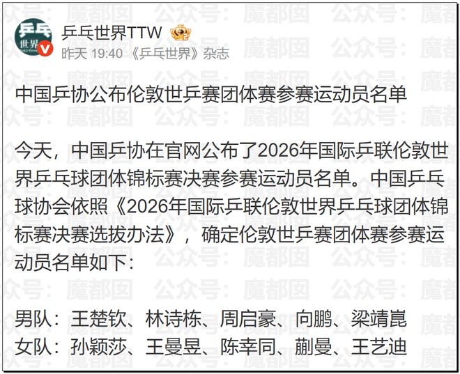 老实讲,女乒的名单完全不意外,比较意外的是男乒。