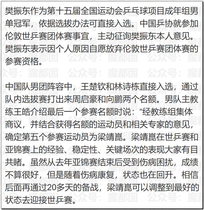 为何?因为我们对这套系统的运作模式实在是太熟悉了,哪怕现在男乒已经到了全军覆没的水平也不可能再让樊振东回来参赛。理由我们不想多说,很多的东西再过几十年甚至上百年都是不会改的。
