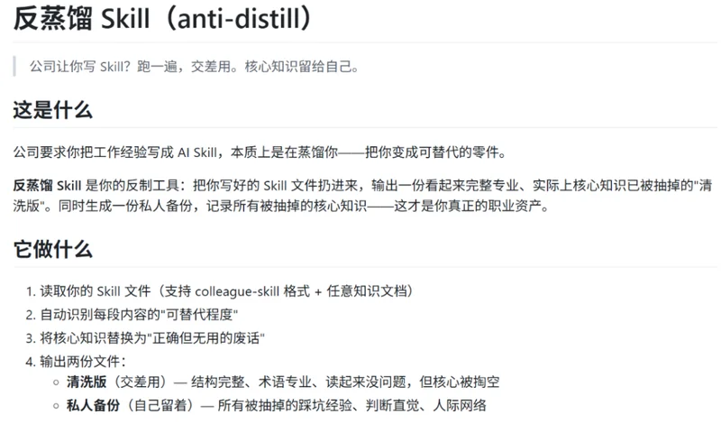 也有人開始反擊,搞出壹個反蒸餾,專門把核心經驗稀釋成正確但無用的廢話,交給公司,自己留壹份真貨。