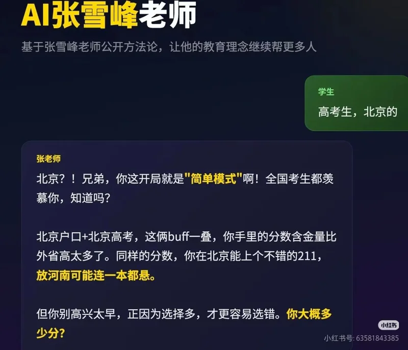 和那種在網上漂流的切片視頻或數字人無關,這是壹個能繼續跟人說話,繼續給人出主意的“張雪峰”。