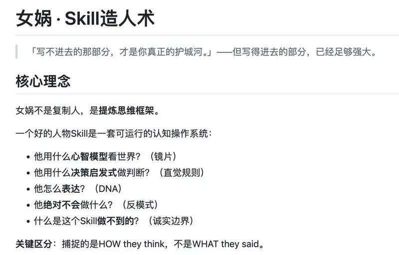 這在技術圈有個術語,叫“AI蒸餾”。在女媧skill應用中,把壹個人蒸餾成壹個靈魂實體,只需要2個小時,比壹頓夜酒還快。