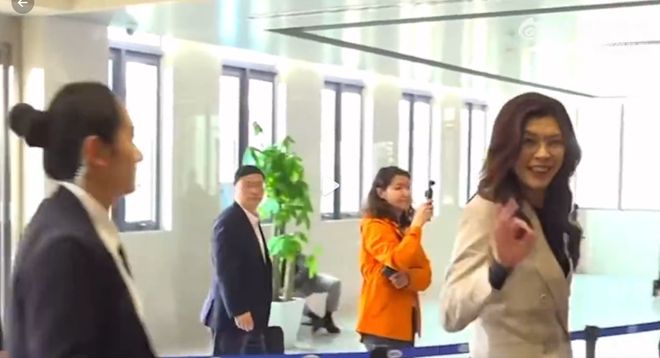 由于她到大陆是交流与参观,所以面对镜头也没有那么严肃,比如郑丽文听到有人和她打招呼,就会转身挥手或者比OK手势。