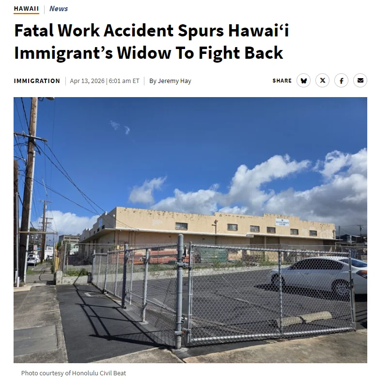 2024年8月3日,也就是他刚刚到美国十几天的时候,在一处仓库装修工地上,事故发生了。一名叉车司机在操作时撞到了仓库的支撑柱,一块约12.5英尺长、重达50磅的木板随之脱落。