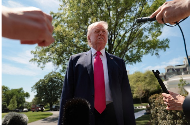 2026年4月16日,美國總統川普(Donald Trump)離開白宮前往拉斯維加斯時,向媒體發表講話。 (Reuters)