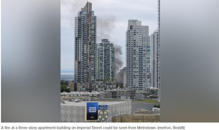 (加西网简讯) 昨天周六傍晚,本拿比铁道镇附近一栋公寓楼发生火灾,导致约40名居民被迫紧急撤离。