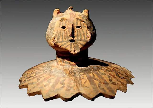 瑞典考古學家安特生在中國河南澠池縣仰韶村獲得的人頭形彩陶器蓋。圖/藝術互動