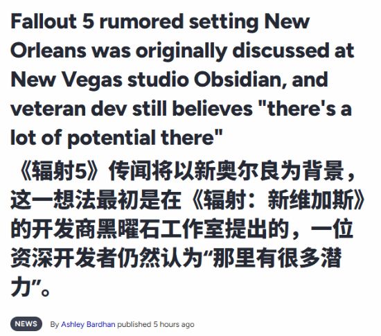 据外媒报道,如果传闻属实,《辐射5》可能会把舞台设在新奥尔良。