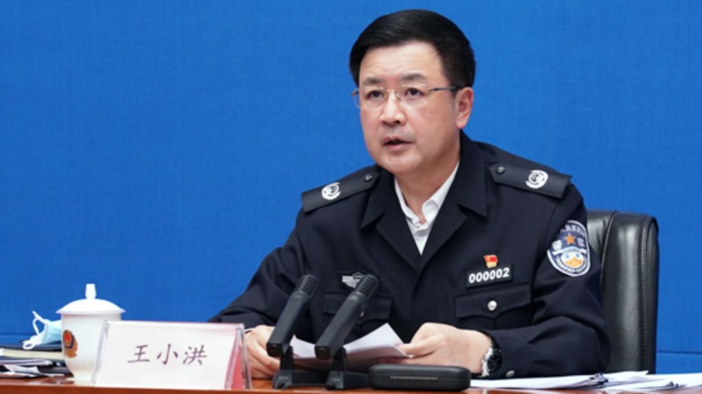 圖為2020年4月16日,全國公安機關打擊治理跨國賭博工作視像會議召開,時任公安部黨委副書記、常務副部長王小洪出席並致詞。(湖南省公安廳)