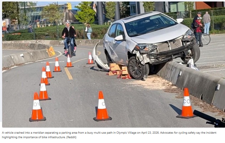 (加西网综合)本周,温哥华奥运村发生一起车辆失控事故,再度引发公众对物理隔离设施在保护骑行者和行人方面作用的关注。