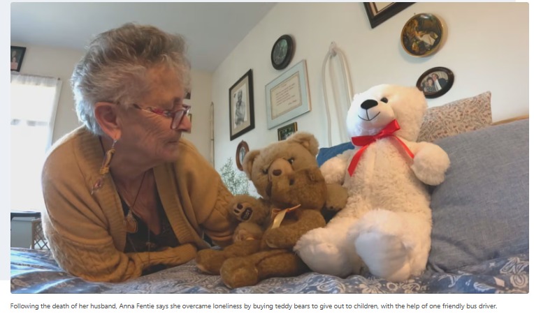 随后,她把这些小熊带到自己常去的一家咖啡店,并请一位相熟的公交车司机帮忙,将小熊送给需要安慰的年轻乘客。