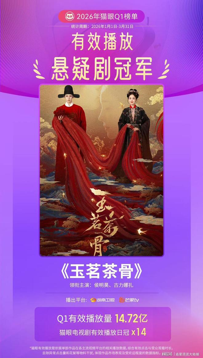 《玉茗茶骨》這部劇簡直精准踩中了我所有追劇的爽點!劇情不狗血不懸浮,將制茶、斗茶、茶商權謀與人物成長自然相融,古力娜扎+侯明昊,兩人在茶盞之間的試探與拉扯,勢均力敵的智斗,比工業糖精好磕壹萬倍。正片累計播放量達14.72億,集均達4089萬,連續14天位居貓眼電視劇有效播放榜日冠。
