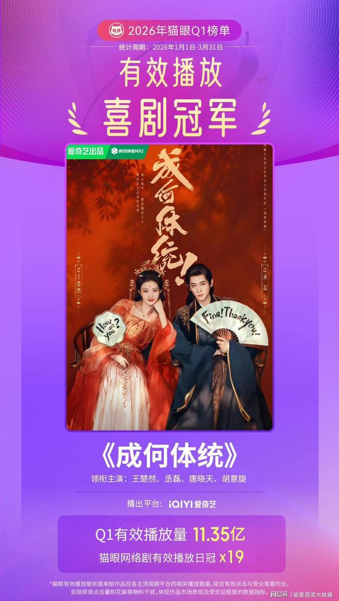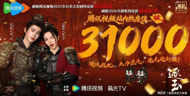 自2026年4月初開播以來,優酷站內熱度峰值達10000,連續多日蟬聯燈塔/貓眼播放量日冠,雲合市占率峰值達17.9%,正片累計播放量破7.5億,集均超3000萬,成為2026年Q2現象級古裝黑馬劇集。