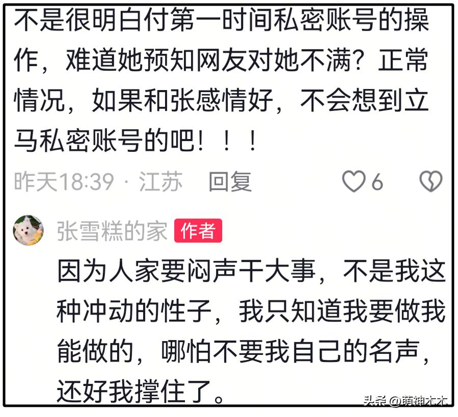 付某被扒出是張老師現任後就私密了賬號,張老師前女友張某某稱對方是想要“悶聲幹大事”。